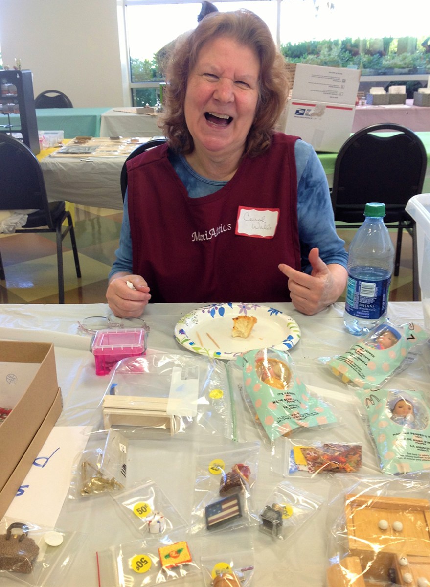 carol-walls Previous Next Published March 20, 2016 at 900 × 1229 in Mini Cals Spring Fling Flea Market Pictures Seller, Carol Walls at her table at MiniCals Flea Market