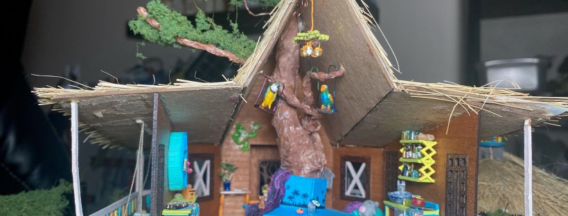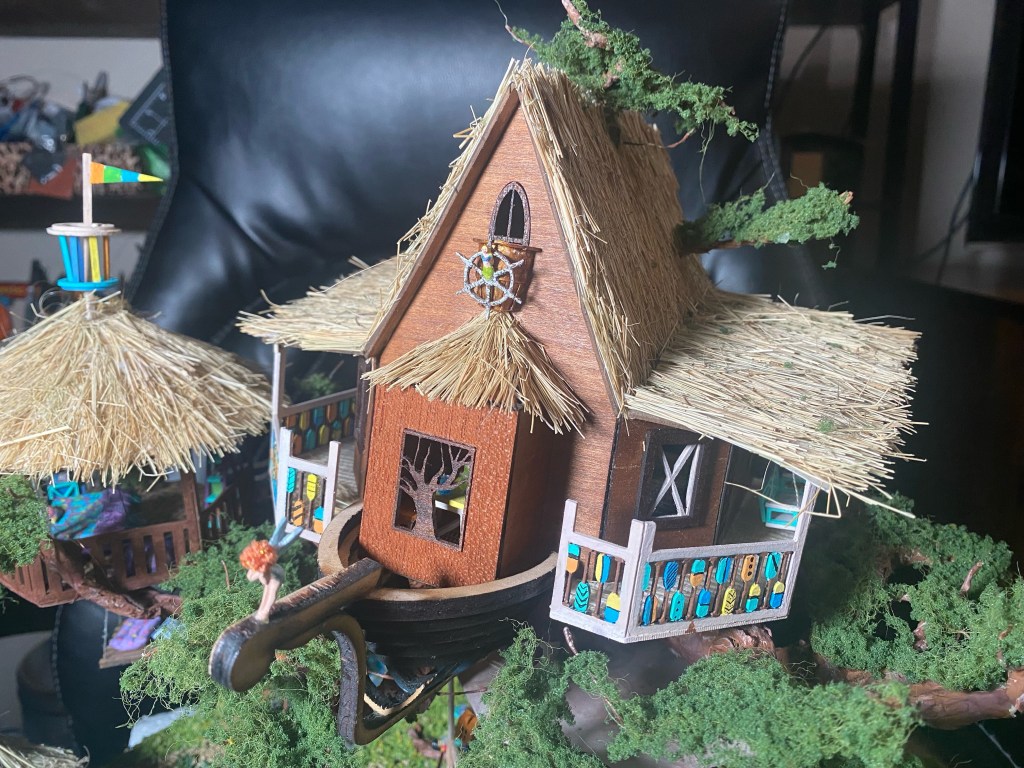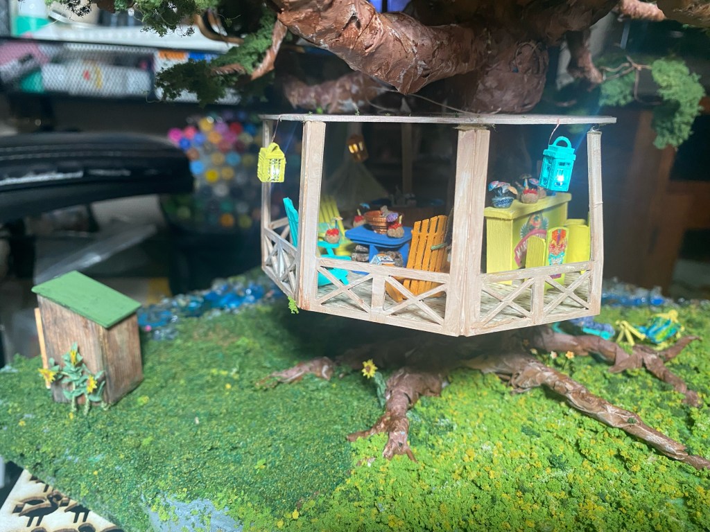 On Friday, participants will enjoy pizza and salad dinner while making a wire armature tree. Saturday begins with a continental breakfast, then on to the 3 lighted room treehouse. Abundant kits, door prizes and hostess gifts will keep everyone busy until the catered lunch. The afternoon will involve landscaping and learning a few new tricks. There will be a TV tray sale for anyone who wants to join in. Cost $100; includes tree, three room treehouse, lighting, base with landscaping, almost all seen furniture kits, door prizes, and table favors. Available in 1′ and 1/4″ scale.