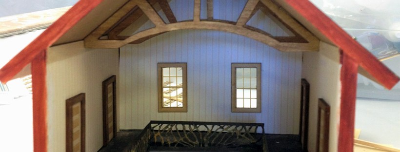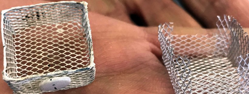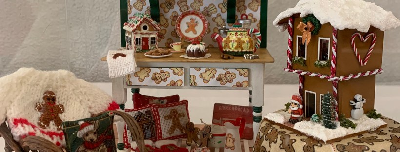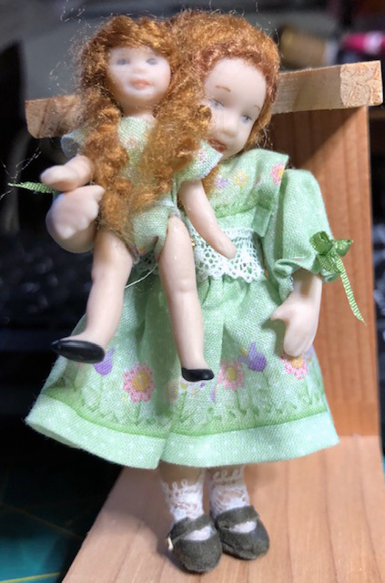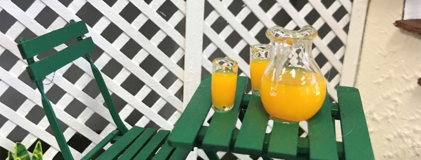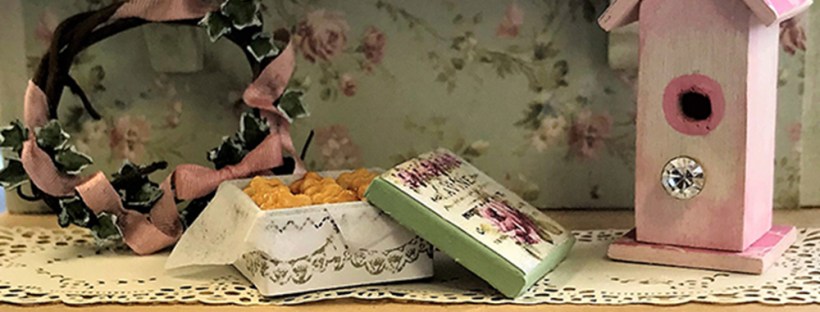 Starting with a stock Houseworks six panel interior door, participants assembled shelves, painted, applied decals, decoupaged, and then aged the door with chalk paints. Using simple card stock, various sized planter pots, including faux galvanized French botanical buckets were cut, shaped and then colored with stock acrylic paints to resemble aged and moss covered terra cotta pots. Instructions were provided for simple flowers, placards and a laser cut wreath. A small plastic display case was provided to showcase each finished project.