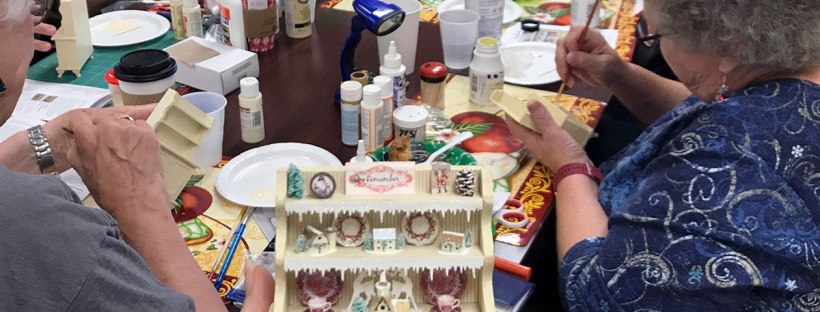 Benicia area miniaturists work on their Friendship Hutches during the workshop taught by Carol Kubrican.