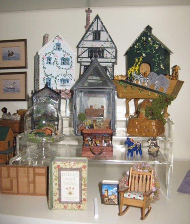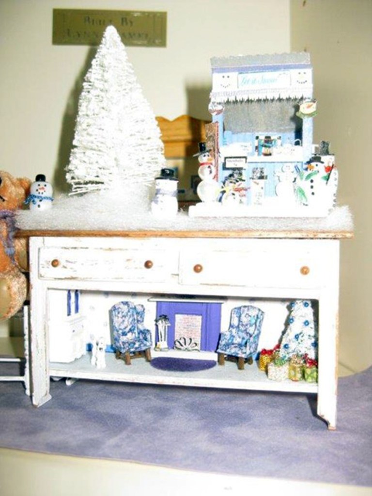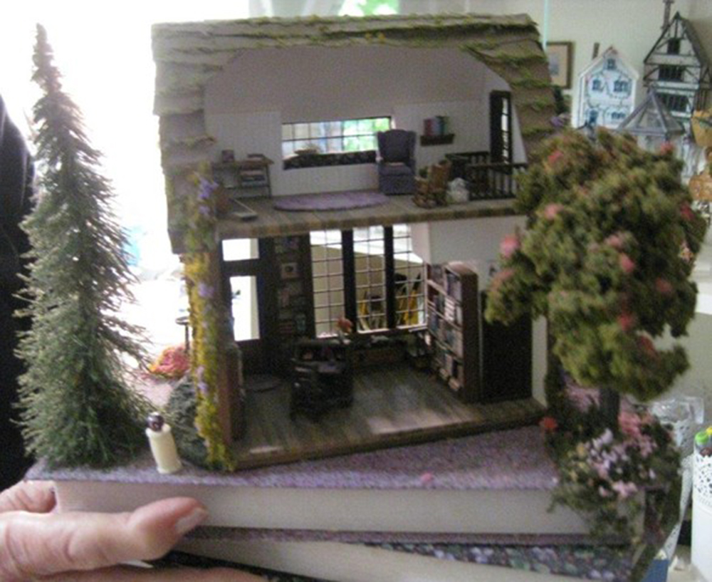 Lynn Hamel is a very talented miniaturist from Rancho Murieta, California. As a child, she was always interested in little things. She collected dolls and tiny glass animals. In the early ‘80s, she told her husband that she wanted a dollhouse. He surprised her with plans for a dollhouse, a gift certificate to the Elegant Dollhouse, and a membership to NAME (National Association of Miniature Enthusiasts) in 1982. She started a club in the early ‘80s and has been an avid miniaturist since then. She is a lifetime member of NAME and continues to support the organization.